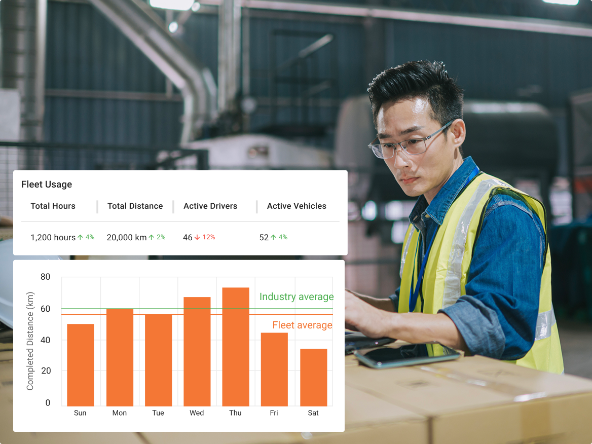 Complete control for heavy logistics, from long trips to harsh driving alerts to fuel monitoring.